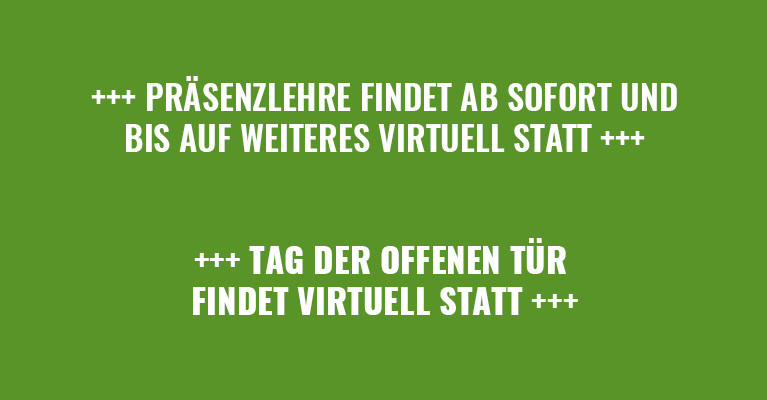 Die Präsenzlehre wird daher in den virtuellen Raum verlegt. Informationen dazu werden Ihnen zeitnah per E-Mail zugesandt.