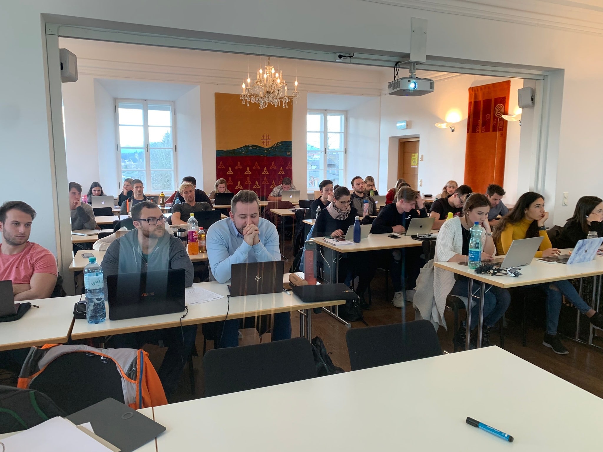 Studierende im Seminarraum des Schloss Seeburg.